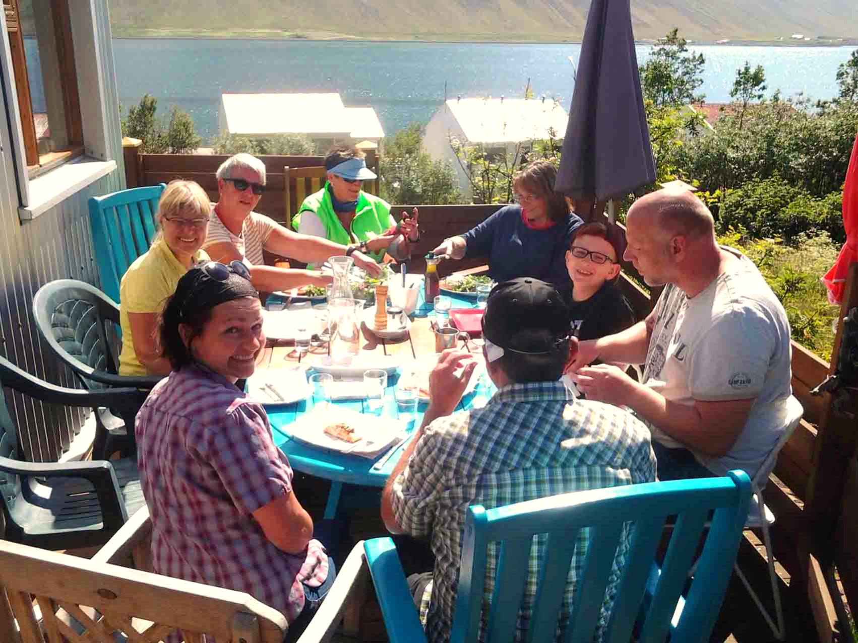 a hidden gem full of colorful plants. In a relaxed atmosphere and with an impressive view of the fjord, you can chat to your hosts over a cup of coffee or tea.